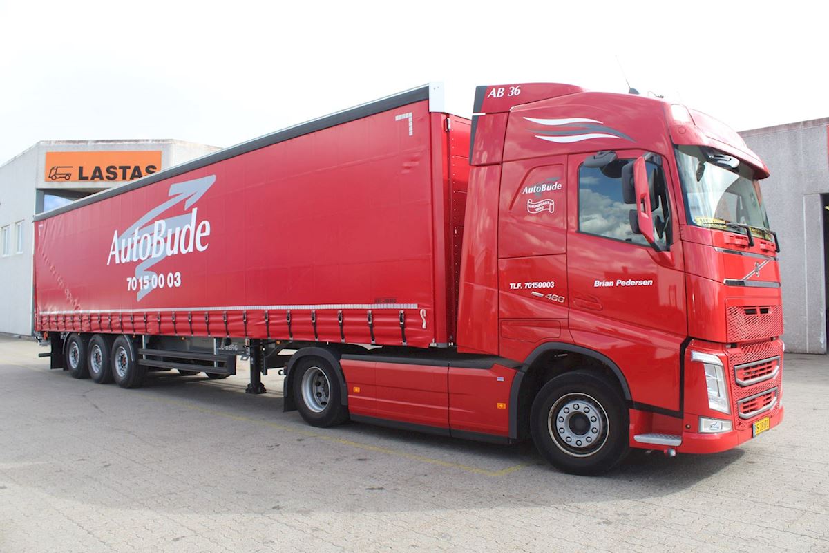 AutoBude A/S har for nyligt afhentet 3 fabriksnye Kel-Berg 3 akslet maxi flexi gardintrailer, ved Lastas i Hedensted. AutoBude fik sin start i 1950 af Svend Ibsen, som solgte til Orla Pedersen i 1991 og senere i 1996 overtog Brian Pedersen forretningen, som han driver i dag. I dag har AutoBude A/S domicil og lagerhotel i Hedensted, samt en afdeling i Greve. De er i dag en betydelig aktør på et stærkt voksende marked for pallegods, og kan tilbyde oplagring af partigods, samt pallegods på deres store lagerhotel i Hedensted. Udover dette har de også firma- og kurérkørsel. De kører hver dag overalt i Danmark samt i Europa.