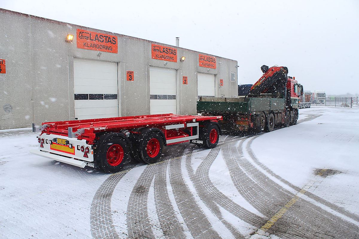 Verner Østergaard har fået leveret denne nye Kel-Berg 3 akslet overføringsanhænger til 6-6,5 m container, fra Lastas i Hedensted. Vognmand Verner Østergaard kan tilbyde mange typer transport opgaver, såsom studenterkørsel, båd- og maskintransport, udlejning af åben-, lukket- og skibscontainere i størrelser fra 3 til 36 m3 til både private og erhverv. Derudover har de to biler med kran, hvor den ene kan løfte fra 12 tons med en max rækkevidde på 32 meter, og en som max kan løfte 4 tons og har max rækkevidde på 20 meter. Ved siden af dette sælger de 10 forskellige slags sand- og grusmateriale, samt muldjord og flis med levering fra 1 m3 og op efter.